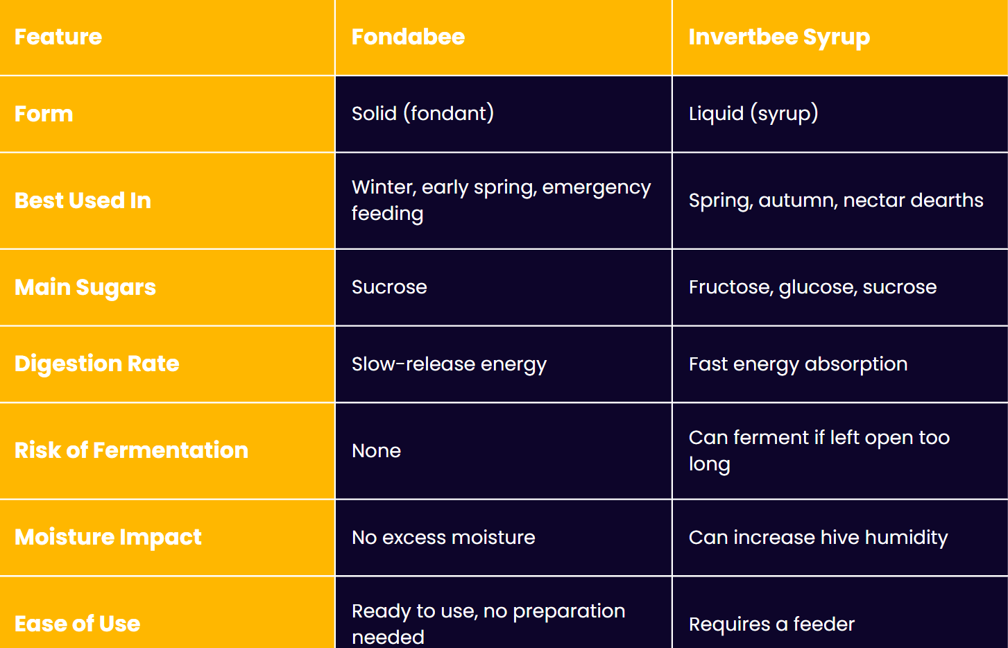 Both Fondabee and Invertbee Syrup play essential roles in beekeeping, and many beekeepers use both at different times of the year. Providing the right feed at the right time ensures your bees remain healthy, productive, and resilient throughout the seasons.